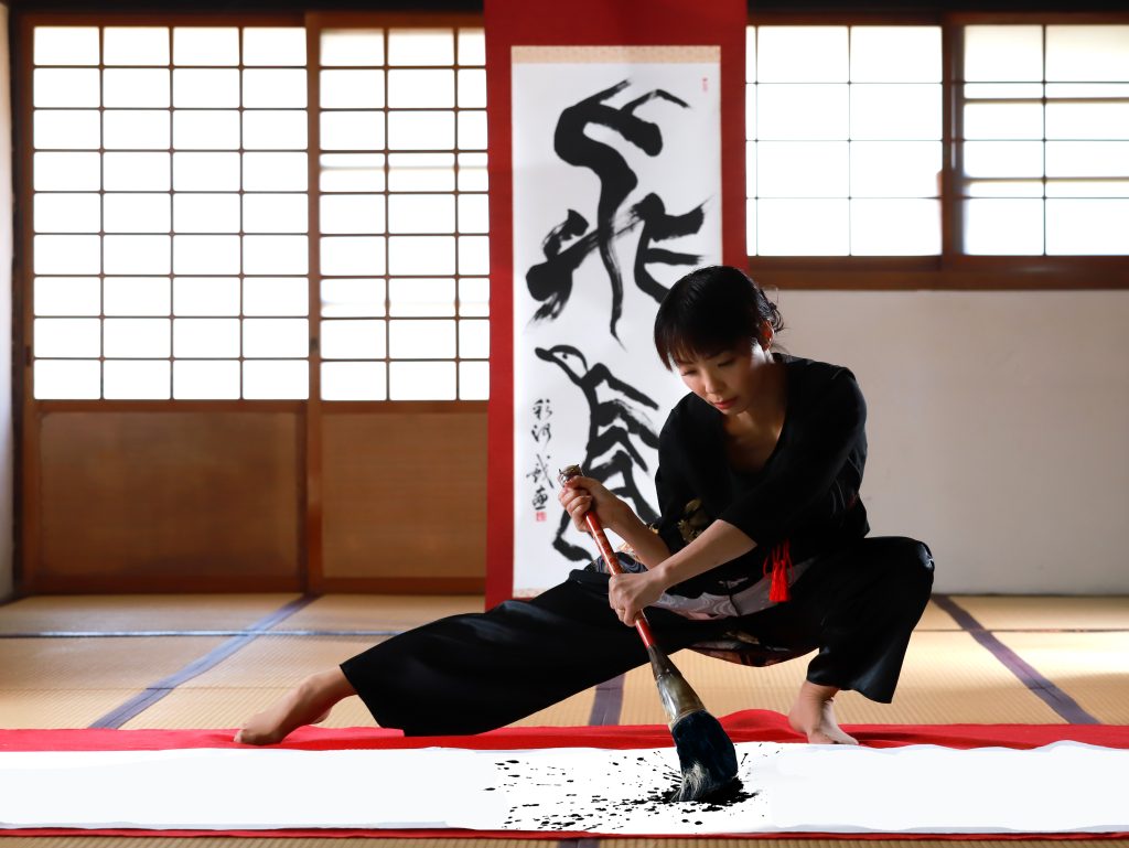 撮影では、書道家中川彩河氏の雰囲気や作品づくりの瞬間を大切にし、